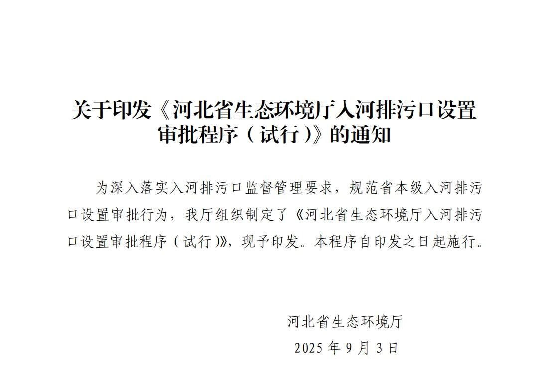 关于印发《河北省生态环境厅入河排污口设置审批程序(试行)》的通知