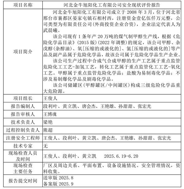 河北金牛旭阳化工有限公司安全现状评价报告
