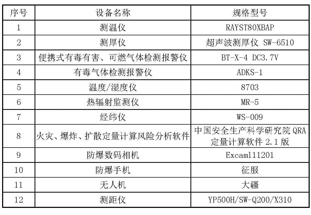 2、主要专业技术设备设施